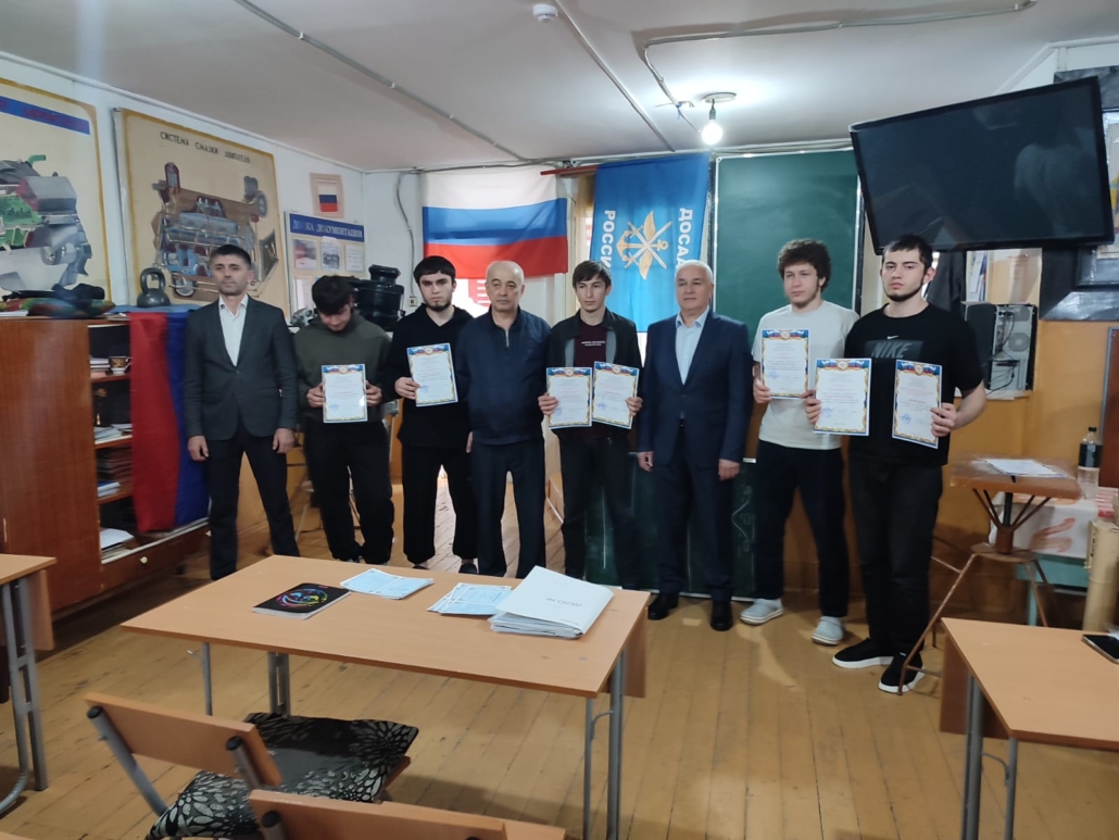 В конце мероприятия Шихов З.С., Алиев Х.Х., Зубаиров Р.Г. вручили курсантам свидетельства об окончании курсов по подготовке водителей по военно-учебной специальности (ВУС-837).
