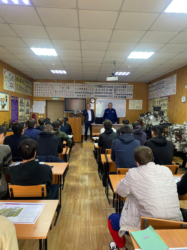 6 октября 2025 года в соответствии с планом на 41 неделю еженедельных военно-патриотических мероприятий согласно рекомендации РО ДОСААФ России РД приуроченный к году «Защитника Отечества» с курсантами автошколы провели разговор о важном на тему «Освещение хода выполнения задачи СВО на Украине. Мужестве и героизме участников боевых действий». Зам.начальника АШ по УПЧ Г. Абакаров начал разговор: Российская Армия продолжает уничтожать тыловую инфраструктуру ВСУ, взрывы прогремели в Чернигове, Харьковской и Днепропетровской областях. Целями были газохранилище и объекты генерации электроэнергии. Выбиваются железнодорожные мощности.