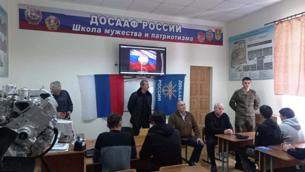 26 февраля 2026 года в рамках Всероссийского месячника оборонно-массовой работы в Дербентской автошколе ДОСААФ был проведен урок Мужества, посвященный проведению специальной военной операции (СВО) на Украине с курсантами автошколы ДОСААФ и учащимися Железнодорожного колледжа г. Дербента.